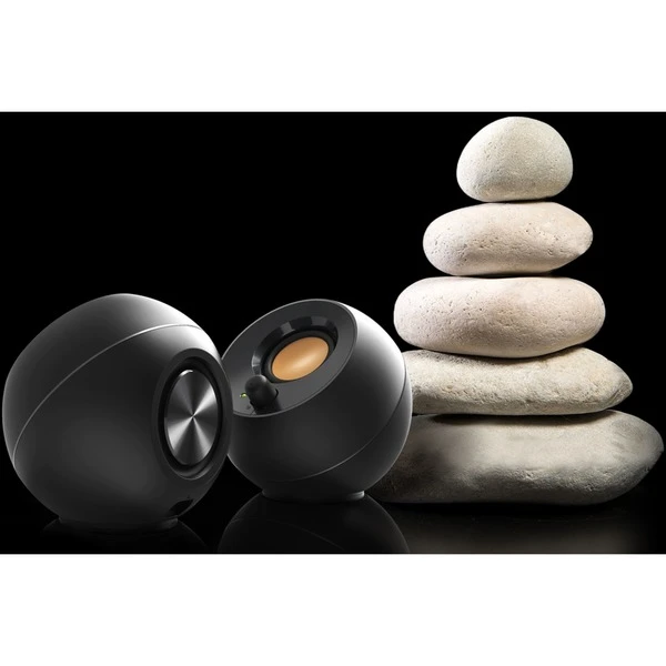 Die Pebble PC-Lautsprecher von Creative überzeugen durch ein formschönes Design, inspiriert durch Elemente der Zen-Architektur. Die im 45° Winkel abgeschrägten Lautsprecher liefern eine spürbare Bass-Resonanz und werden mit insgesamt 4,4 W (RMS) angenehm laut. Praktisch: Die Stromversorgung erfolgt ausschließlich über USB, sodass keine externe Stromversorgung notwendig ist. Per 3,5-mm Klinke können Abspielgeräte mit den Pebble Lautsprechern verbunden werden. Der an der Front angebrachte Lautstärkeregler macht das justieren selbiger komfortabel und ist gut erreichbar.Art.-Nr.: 1407739