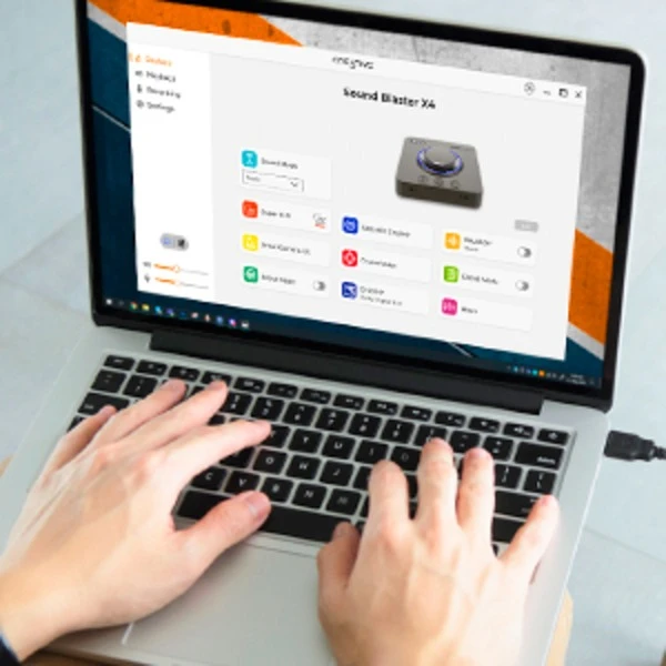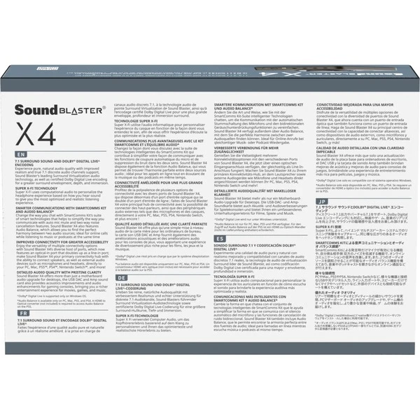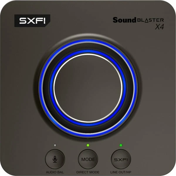 Der Sound Blaster X4 bietet einen frischen neuen Look und unterstützt bis zu 7.1 diskreten und virtuellen Surround Sound mit drei verschiedenen Surround-Lieferoptionen – Super X-Fi Headphone Holography, Surround Virtualization der Sound Blaster Acoustic Engine und Dolby Digital Live