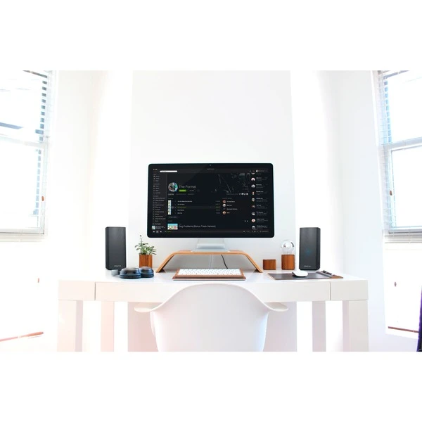 Die T100 von Creative sind die Nachfolger der viel beachteten T20 und T40 Serie. Es handelt sich hier um kompakte 2.0-Hi-Fi-Lautsprecher in elegantem und minimalistischem Design, die sich perfekt in jede Desktop-Umgebung einfĂĽgen lassen. Die Einrichtung ist äuĂźerst einfach. Einfach das Netzteil anschlieĂźen, aus einer Vielzahl von Anschlussoptionen auswählen und voilĂ – in Minuten kann man bereits beste Audioqualität genieĂźen! Als Anschlussoptionen stehen drahtloses Bluetooth 5.0, 3,5-mm-AUX-in, optischer Eingang fĂĽr PS4 und USB fĂĽr USB-Sticks (unterstĂĽtzt die Formate FLAC fĂĽr hochauflösenden verlustfreien Klang, WAV und MP3) zur VerfĂĽgung. Die T100 sind mit einem 2,75-Zoll-Breitbandtreiber und eingebautem Digitalverstärker ausgestattet, der bis zu 40 W Sinusleistung und Spitzenleistungen von bis zu 80 W liefert. Die Lautsprecher sind speziell abgestimmt, um ein wirklich durchdringendes und raumfĂĽllendes Klangerlebnis zu bieten. So genieĂźt man eine breite, naturgetreue KlangbĂĽhne mit unglaublicher Tiefe und Audioklarheit. Creatives proprietäre BasXPort-Technologie verstärkt den Bass fĂĽr satte, tiefe Töne, ohne dass ein Subwoofer benötigt wird. Mithilfe der mitgelieferten Fernbedienung lässt sich der Klang weiter anpassen! Neben den Equalizer-Voreinstellungen fĂĽr Filme, Musik, Konzerte und Gaming können auch Höhen und Bässe nach Belieben eingestellt werden. Die an der Oberseite des rechten Lautsprechers angebrachten Tasten, lassen sich ebenfalls bequem erreichen.Art.-Nr.: 1658486