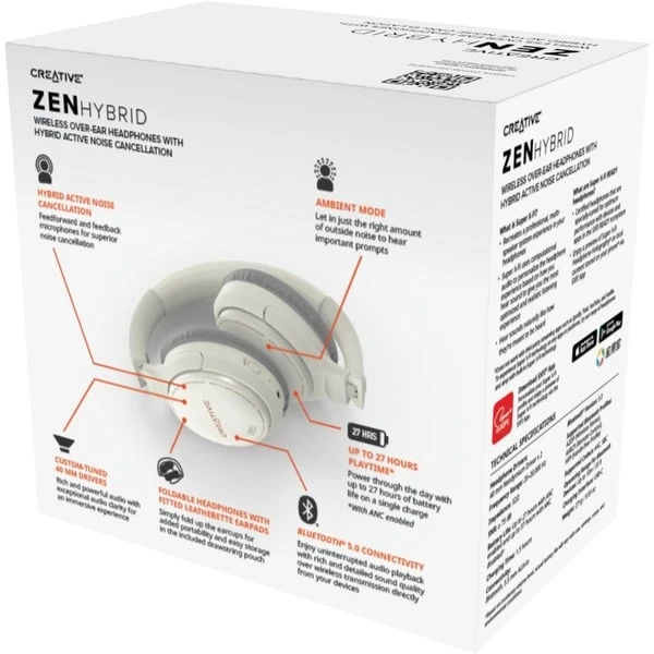 Mit hybrider aktiver Geräuschunterdrückung, die sowohl das Feedforward-als auch das Feedback-ANC-System übernimmt, und einem Umgebungsmodus, der genau die angemessene Menge an Umgebungsgeräuschen zulässt, damit Sie über die Ereignisse um Sie herum wachsam bleiben. Selbst bei eingeschaltetem ANC können kann man mit einer langen Akkulaufzeit von bis zu 27 Stunden rechnen. Die Over-Ear-Kopfhörer sind eine ideale Kombination aus Vielseitigkeit und Leistung- drahtlos oder kabelgebunden, im Freien oder drinnen -und mit einem geräuschunterdrückenden Mikrofon ausgestattet, das alle spontanen Anrufe bewältigen kann, wo immer man auch gerade ist. Der Creative Zen Hybrid wurde aus hochwertigen Materialien gefertigt, darunter ein verstärkter Stahlkern, 40-mm-Neodym-Treiber und eine physische Tastensteuerung am Kopfhörer selbst. Mit Creative Zen Hybrid findet man immer sein Zen.Art.-Nr.: 1863234
