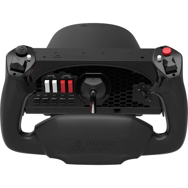 Honeycomb Aeronauticals Alpha Flight Controls ist eines der fortschrittlichsten Steuerhörner, das gegenwärtig für die Flugsimulation am PC zur Verfügung steht. Es wurde konzipiert, um den Anforderungen von Flugsimulator-Nutzern, aber auch von Flugschülern und Piloten zu entsprechen. Alle internen Komponenten sind in Luftfahrtqualität gefertigt und bieten mit einer realistischen Ergonomie ein wirklichkeitsgetreues Flugerlebnis. Die hochwertige Mechanik bietet für die Querrudersteuerung einen realistischen vollen 180°-Drehwinkel mit einem selbstzentrierenden Mechanismus ohne Deadzone. In Längsrichtung erlaubt die Stahlwelle einen Bewegungsraum von 15 cm. Der Mechanismus ist vollständig aus Metall gefertigt und gewährleistet so eine lange Haltbarkeit. Das Yoke verfügt über ein Schalter-Panel mit Batterie- und Alternator-Schalter, AvionikHauptschalter sowie Lichtschaltern. Es ist mit einer roten LED-Hintergrundbeleuchtung ausgestattet, sodass es auch nachts gut bedienbar ist. Ebenfalls vorhanden ist ein Zündschalter, wie er bei Kolbenmotorflugzeugen üblich ist. Am linken Griff befinden sich zwei Tasten, zwei 2-Wege-Hat-Switches und eine Push-toTalk-Taste, während der rechte Griff über zwei weitere 2-Wege Hat-Switches, einen 8-Wege-Rundblickschalter sowie eine Taste verfügt.Art.-Nr.: 1587336
