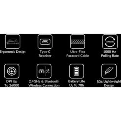 | Besonderheiten | Lift-Off-Distanz: 1,0 / 2,0 mm | Linienbegradigung (Angle-Snapping) ein-/ausschaltbar | ABS | Bis zu 70 Stunden Akkulaufzeit | ||