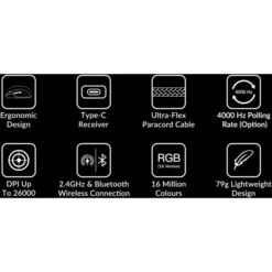 | Weitere Informationen | Polling-Rate: 4.000 Hz (2,4-GHz ), 1.000 Hz (kabelgebunden), 125 Hz (Bluetooth) | ||