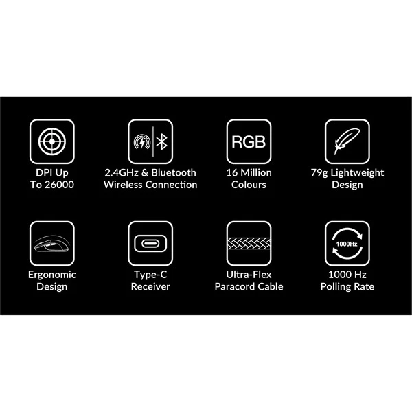 Die Keychron M3 Wireless Gaming-Maus eignet sich ideal für jedes Szenario – ob bei der Arbeit, beim Spielen oder sogar unterwegs. Bei einem Gewicht von nur 79 Gramm bietet sie drei Verbindungsarten für den flexiblen Einsatz: kabellose 2,4-GHz- oder Bluetooth-5.1-Verbindung oder kabelgebunden über ein ultraflexibles Paracord-USB-Kabel. Die M3 Wireless verfügt über einen leistungsstarken, optischen PixArt PAW 3395 Sensor, der mit einer Auflösung von 100 bis 26.000 dpi, Geschwindigkeiten von bis zu 650 ips und einer Beschleunigung von 50 g jede noch so kleine Bewegung pixelgenau erfasst und umsetzt. Ihr ergonomisch geschwungenes Design sorgt für einen guten Grip, auch nach Stunden, und das Design der Seitenteile bietet in noch besseres Grifferlebnis. Die Kailh GM 8.0 Mikroschalter liefern ein sauberes Klickgefühl und haben eine Lebensdauer von bis zu 80 Millionen Klicks und der Akku bietet eine Laufzeit von bis zu 70 Stunden (bei ausgeschalteter Beleuchtung). Darüber hinaus ermöglicht die Keychron-Engine-Software weitere Personalisierungen der M3 Wireless, wie das Ändern von Tasten, das Festlegen von Tastenkombinationen, die Anpassung der RGB-Beleuchtungseffekten und sogar das Erstellen eigener Makros. Auch professionelle Einstellungen für Lift-Off-Distanz, Polling-Rate, DPI usw. lassen sich darüber vornehmen.Art.-Nr.: 1906989