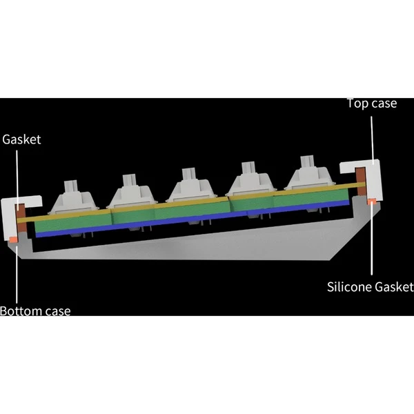 | Weitere Informationen | Vollständig montierte Tastatur inkl. Aluminiumrahmen, PCB, Stahlplatte, schalldämmender Schaumstoff, Gehäuseschaumstoff, 16 Gaskets (10 vorinstalliert, 6 zusätzlich), 8 Sets an Stabilisatoren, Drehregler, 1 Set ABS-Tastenkappen und 1 Set Gateron G Pro Tastenschalter (vorgeölt) | ||