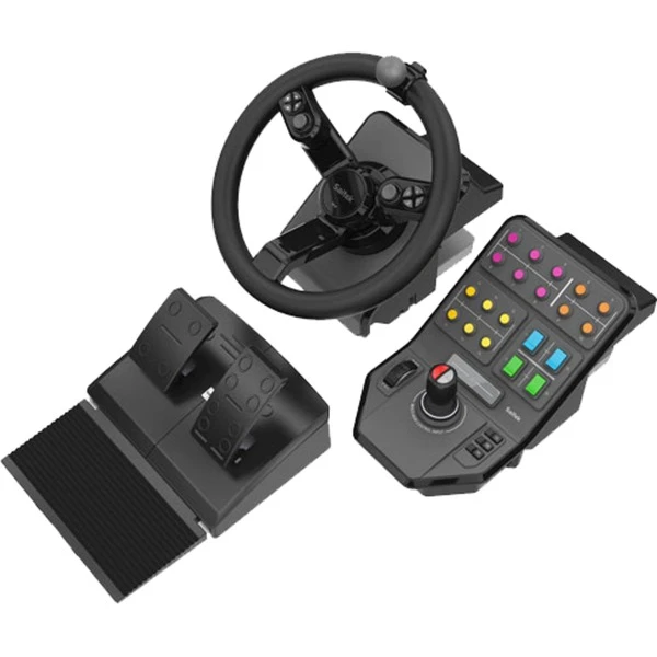 | Besonderheiten | Lenkrad mit Drehknopf und Hupe, Dedizierte Pedale mit 20° Drehwinkel, Steuerpult mit Lader-Steuerung, 25 programmierbaren Tasten, Geschwindigkeitsregler-Schnellwahl, Autopilot-Funktion, Plug&Play | ||