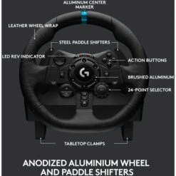 | Besonderheiten | Force Feedback mit zwei Motoren mit TRUEFORCE, Halleffekt-Lenksensor, Renntaugliches Material, Leicht zugängliche Bedienelemente, Reaktionsschnelle Bodenpedaleinheit, Nichtlineares Bremspedal, Lenkradstreifen zur Orientierung, Integrierter Drehregler, Drehzahl- und Schalt-LEDs | ||