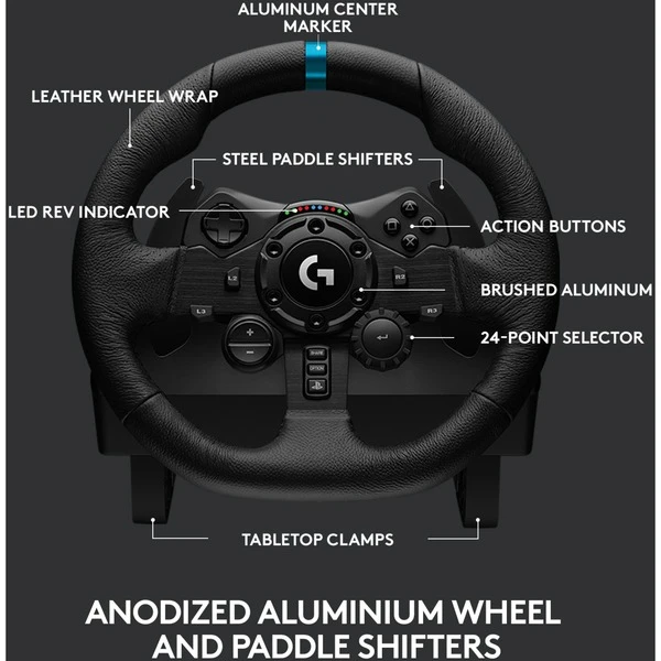 Das Logitech G923 TRUEFORCE Force Feedback-Lenkrad leitet die nächste Generation von Rennlenkrädern ein. Das preisgekrönte Logitech G-Design wurde so ĂĽberarbeitet, dass es sich in die Physik des Spiels einfĂĽgt und einen beispiellosen Realismus bietet. Man spĂĽrt wie nie zuvor das Pumpen der Kolben, das Knirschen des Kieses und alle Schaltvorgänge, Drifts und Haarnadelkurven. TRUEFORCE ist die jĂĽngste Force-Feedback Technologie-Innovation und die direkte Verbindung zu Simulations-Engines im Spiel mit entsprechenden physikalischen Eigenschaften fĂĽr noch realitätsgetreuere Reaktionen in Echtzeit. Auch der RĂĽckkopplungsfrequenzbereich wurde erhöht, was im Vergleich zu frĂĽheren Generationen zu einer dramatisch verbesserten Detailtreue und Realitätsnähe fĂĽhrt. Die fortschrittliche Firmware des G923 ĂĽberwacht den gesamten Strom, der durch die Motoren der Räder flieĂźt, und passt die Spannung kontinuierlich an die Ausgabe aus der Spielphysik an. Mit dem G923 erhält man also absolute Zielgenauigkeit und beispiellosen Realismus. Eine programmierbare Doppelkupplung ermöglicht saubereres und schnelleres Abfahren von der Startlinie in unterstĂĽtzten Spielen. Die neue Farbgebung, hochwertiges gebĂĽrstetes Metall, Ledernähte im Automobilstil und polierte Pedale verleihen dem G923 ein professionelles Finish. Die Form folgt der Funktion mit integrierter Mittenmarkierung und Drehscheibe. Komplette PlayStation-Bedienelemente sind direkt in das Lenkrad eingebaut. Ganz gleich, wie man fährt, jeder Steuerbefehl ist direkt zur Hand. Bodenhaftung, Drehmoment, Bremskraft – alles ist ĂĽber einen integrierten Drehregler einstellbar. Eingebaute farbige LEDs zeigen zudem den Drehzahlbereich in unterstĂĽtzten Spielen an. Man sieht sofort, wenn die rote Linie erreicht ist – man hat sie direkt vor Augen. Das G923 TRUEFORCE bietet die vollste Kontrolle in Rennspielen.Art.-Nr.: 1665513