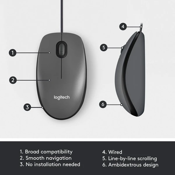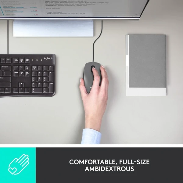 Komfortabel, benutzerfreundlich und immer einsatzbereit. Die Logitech M100 ist eine beidhändig bedienbare Maus in Standardgröße und erfüllt alle Anforderungen ohne viel Aufhebens – einfach das Kabel in den USB-Anschluss einstecken und loslegen. Dank des präzisen, zeilenweisen Bildlauf erledigt man täglichen Aufgaben reibungslos und einfach. Die M100 funktioniert mit Windows, macOS und Linux und ist „Funktioniert mit Chromebook“-zertifiziert.Art.-Nr.: 1905868