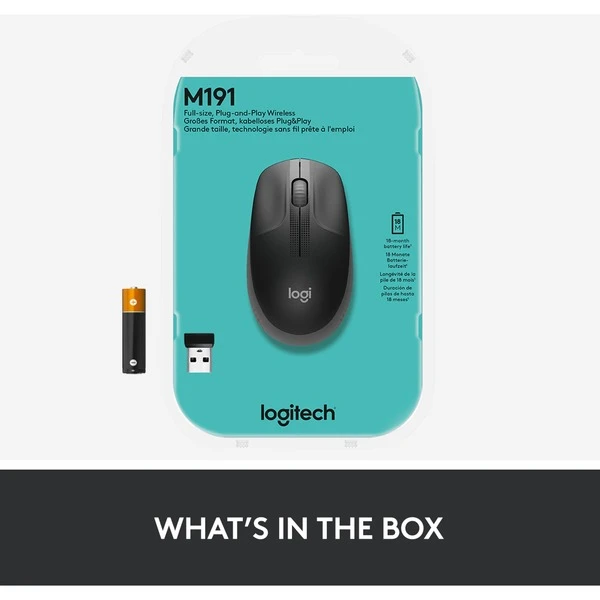 Die Logitech M190 ist eine kabellose Maus in Standardgröße mit einem komfortablen, geschwungen geformten Design, das der natürlichen Wölbung mittelgroßer bis großer Hände folgt und sowohl für Links- als auch Rechtshänder geeignet ist. Spezielle konkave Tasten führen die Finger in die ideale Position und die zusätzliche Handballenunterstützung sorgt für Komfort den ganzen Tag lang. Die M190 ermöglicht kabelloses Arbeiten und Bewegungsfreiheit mit einer Reichweite von bis zu 10 Metern und praktisch ohne Verzögerungen oder Ausfälle. Der optische Sensor sorgt für eine geschmeidige und präzise Cursor-Steuerung auf nahezu jeder Oberfläche. Ganz gleich, ob man die M190 mit einem Notebook, einem Desktop, zu Hause oder unterwegs verwendet: Auf diese Maus kann man sich verlassen.Art.-Nr.: 1676717