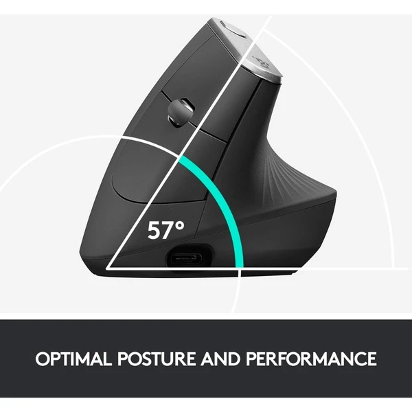 | Feature | natürliche Händedruck-Position reduziert die Muskelbeanspruchung um 10 % | Senkrechter 57°-Winkel für optimale ergonomische Handhaltung und Performance | Hochpräzisionssensor mit 4.000 DPI (einstellbar in 50 DPI-Schritten) für eine 4-fache Reduzierung der erforderlichen Handbewegungen | wiederaufladbar mit Schnellladung | ||