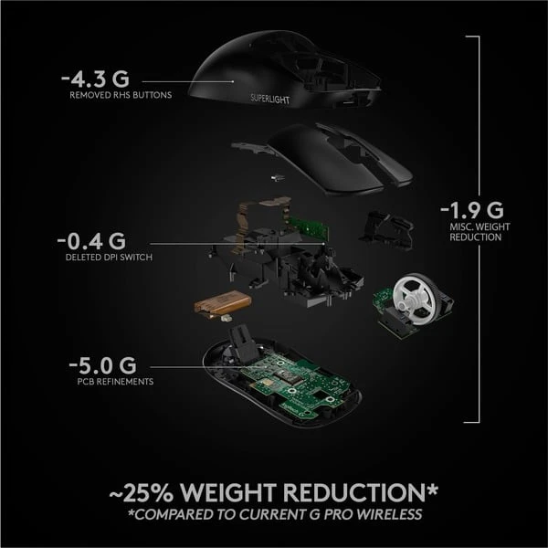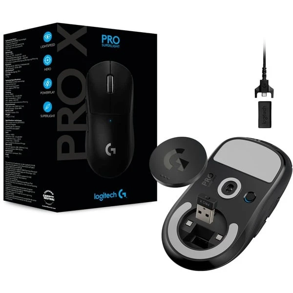 Mit der ultraleichten und superschnellen Logitech PRO X SUPERLIGHT Gaming-Maus sind keine Grenzen mehr auf dem Weg zum Sieg gesetzt. Sie ist mit gerade mal 63 g fast 25 % leichter im Vergleich zur kabellosen PRO Standardmaus von Logitech. Die PRO X SUPERLIGHT wurde zusammen mit den weltbesten Esports-Profis entwickelt, bietet zuverlässige Performance dank LIGHTSPEED-Technologie und einem HERO-Sensor mit bis zu 25.000 dpi für eine unglaublich präzise, schnelle und konsistente Steuerung. Die größeren PTFE-Füße ohne Zusatzstoffe ermöglichen zudem eine bemerkenswert höhere Gleitfähigkeit.Art.-Nr.: 1695804
