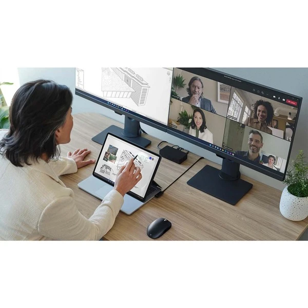 Das Microsoft Surface Laptop Studio Commercial bringt als leistungsstarkes Convertible mehr Multitasking-Geschwindigkeit mit einem Intel® Core™ i7-Prozessor der 11. Generation, 32 Gigabyte RAM und schneller ein Terabyte SSD. So führt man alle wichtigen Apps mit noch mehr Leistung, mehr Geschwindigkeit und mehr Multitasking-Power als je zuvor aus. Die NVIDIA GeForce RTX A2000 beschleunigt 3D-Visualisierungen, CAD Anwendungen und andere rechenintensive Sofware. Hintergrundgeräusche sind durch ein cleveres Kühlungssystem reduziert. So kann man sich per Audio und Video von der besten Seite und deutlich hörbar präsentieren. Dabei tippt man entschlossen und genau mit reaktionsschnellen, hintergrundbeleuchteten Tasten auch unterwegs und kann dort das Gerät mit dem schnellen Aufladen im Handumdrehen aufladen. Auf dem gestochen scharfen 36,6 cm (14,4“) Touchscreen mit 120 Hz lassen sich Notizen und Zeichnungen ganz intuitiv wie mit Stift und Papier skizzieren.Art.-Nr.: 1813873