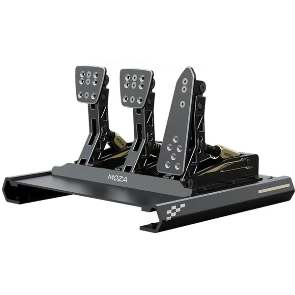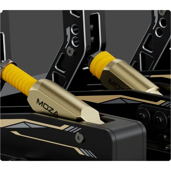 Mit den MOZA CRP Pedals lässt sich die Kunst des Fahrens meistern! Mit ihrem eleganten schwarz-goldenen Design sind die CRP Pedals