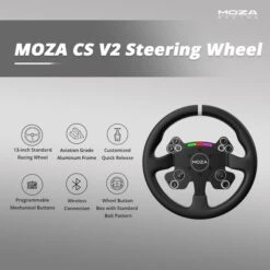 Das MOZA CS V2 Steering Wheel bietet mit seiner lebensechten Größe von 330 mm (13 Zoll), die dem echten Rennwagen entspricht, ein realistisches Rennsimulationserlebnis. MOZAs maßgefertigtes Schnellwechselsystem, das von echten Rennsystemen inspiriert wurde, ermöglicht es Rennfahrern, das Lenkrad in Sekundenschnelle zu wechseln. Die magnetischen Schalthebel bieten ein solides Gefühl durch das geschmiedete Karbonfaserdesign. Die kontaktlose fotoelektrische Technologie macht die Schaltwippen extrem stabil und sorgt dafür, dass man nie einen Schaltvorgang verpasst. Darüber hinaus verfügt das CS V2 Steering Wheel über sechs programmierbare mechanische Tasten mit taktiler Rückmeldung, zwei 20-Segment-Drehregler, die knackige Metallgeräusche und ein taktiles Gefühl beim Einstellen der Parameter während des Rennens bieten, sowie zwei Analog-Sticks, die zehn Tasten und zwei Steuerkreuze simulieren können, um komplexe Vorgänge in Rennspielen zu steuern. Das CS V2 Steering Wheel verfügt über eine sequenzielle Schaltanzeigen mit zehn LED-Lichtpunkten und sieben einstellbaren Farben, mit denen der Fahrer die Beleuchtung der Drehzahl anpassen kann. Sowohl die Beleuchtungseinstellung als auch Tastenprogrammierung kann bequem über die MOZA Pit House Software vorgenommen werden. Die kabellose 2,4-GHz-Signaltechnologie von MOZA ermöglicht ein einfaches und problemloses Rennen, das sich in Tausenden von Teststunden als langlebiger und stabiler erwiesen hat als eine kabelgebundene Übertragung. Art.-Nr.: 1912672