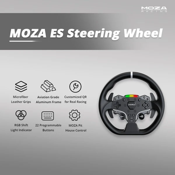 Das MOZA ES Steering Wheel bietet mit seiner Größe von 280 mm (11 Zoll) ein komfortables und realistisches Rennsimulationserlebnis. Dank sorgfältigem Nähen und Beziehen fühlt sich das hochwertige Mikrofaser-Leder des Griffbereichs gut an und ist für eine lange Nutzung geeignet. Bis hin zum Skelett kann man eine solide und robuste dicke Aluminiumlegierung für maximales Eintauchen genießen. MOZAs maßgefertigtes Schnellwechselsystem, das von echten Rennsystemen inspiriert wurde, ermöglicht es Rennfahrern, das Lenkrad in Sekundenschnelle zu wechseln. Mit den zwei Schaltwippen aus Aluminiumlegierung fühlt sich jeder Schaltvorgang sauber und ordentlich an und dank 22 vollständig anpassbarer Tasten (darunter ein Steuerkreuz) können Fahrer alle notwendigen Einstellungen an Bord vornehmen, während sie mitten in der Hitze des Gefechts sind. MOZAs charakteristisches Flow-Light-Design bietet Rennfahrern ein intensives Erlebnis und sorgt dafür, dass jede Schaltung genau richtig ist. Sowohl die Beleuchtungseinstellung als auch Tastenprogrammierung des ES Steering Wheels kann bequem über die MOZA Pit House Software vorgenommen werden.Art.-Nr.: 1912668