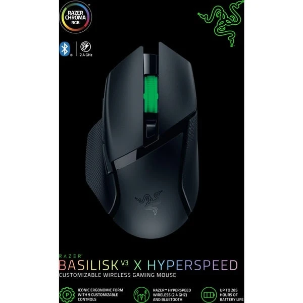 Die kabellose Dual-Mode-Gaming-Maus Basilisk V3 X HyperSpeed von Razer bietet noch mehr Freiheit und Präzision, egal in welchem Gaming-Genre man gerade aktiv ist. Mit der Basilisk V3 X HyperSpeed merkt man gar nicht, dass man mit einer kabellosen Maus spielt, denn blitzschnelle Datenübertragung, extrem niedrige Latenzen und übergangslose Frequenzwechsel in stark ausgelasteten Umgebungen sorgen für optimale Unterstützung. Auch kann man jederzeit von der Razer HyperSpeed Wireless 2,4-GHz-Verbindung in den Bluetooth-Modus wechseln, um die Akku-Laufzeit noch weiter zu verlängern. Der optische 5G-Advanced-Sensor von Razer mit bis zu 18.000 dpi ermöglicht absolute Präzision in 50-dpi-Schritten, damit man im virtuellen Gefecht immer ganz vorne mit dabei ist. Sieben programmierbare Tasten lassen sich per Razer Synapse 3 vollständig konfigurieren und hochwertige, taktile Mausrad setzte mit seiner RGB-Beleuchtung einen individuellen Akzent. Darüber hinaus bietet die Basilisk V3 X HyperSpeed mit ihren Razer Mechanical Gen 2 Schaltern eine Haltbarkeit von bis zu 60 Millionen Klicks – ideal für ausgiebiges Gaming.Art.-Nr.: 1904582