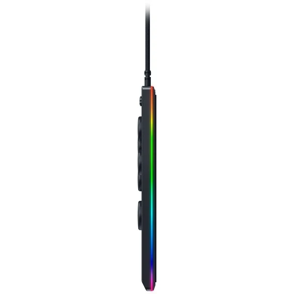 | Besonderheiten | Tasten mit Razer Low Profile Linear optical Switches, vier Bewegungstasten statt eines Joysticks, Spange zur Sicherung des Kabels, abnehmbares Aluminium-Oberteil, UnterstĂĽtzung fĂĽr Razer Chroma RGB, abnehmbares USB-Kabel | ||