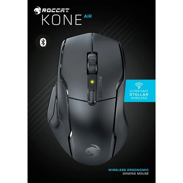 Die kabellose, ergonomisch gestaltete Gaming-Maus Kone Air von Roccat bietet Gamern maximale Flexibilität – fĂĽr die Arbeit und Gaming. Die Stellar Wireless-Verbindung mit 2,4 GHz gewährleistet ein verzögerungsfreies Gaming-Erlebnis. Der Bluetooth-Modus ermöglicht Produktivität bei geringerem Energieverbrauch fĂĽr unterwegs. Ein oder zwei AA-Batterien sorgen fĂĽr eine Akkulaufzeit von bis zu 800 Stunden. Die ergonomische Kone-Form bietet Bedienkomfort auch bei intensiven Gaming-Sessions. Durch ausreichend Platz fĂĽr die Handfläche und strapazierfähige, doppelschichtige Kautschuk-Seitengriffe ist das BediengefĂĽhl der Kone Air unverwechselbar. Das Multi-Tasten-Design wird durch die Easy-Shift[+] Tasten-Duplikationstechnologie erweitert, die fĂĽr insgesamt 9 Tasten 17 programmierbare Eingabemöglichkeiten eröffnet: Einfach die programmierbare Easy-Shift[+]-Taste gedrĂĽckt halten – schon eröffnet sich eine breite Palette an Zweitfunktionen. Roccats Titan Tasten-Switches ermöglichen in Kombination mit dem Owl-Eye Optical-Sensor mit 19.000 DPI höchstes Niveau an Geschwindigkeit, Präzision und Reaktionsschnelligkeit. Art.-Nr.: 1907800