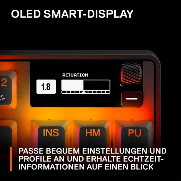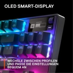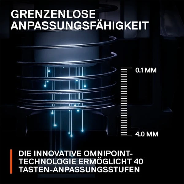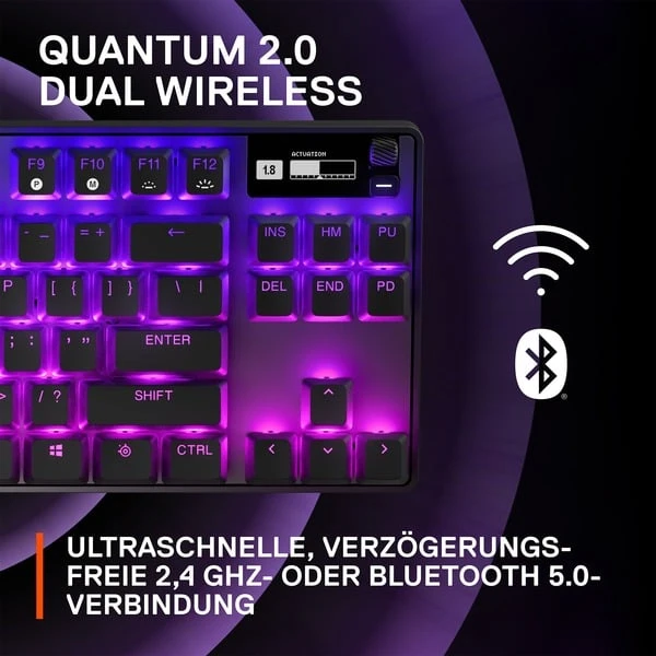 | Besonderheiten | OLED Smart Display, einstellbarer Auslöseweg von 0,1 bis 4,0 mm mit 40 individuellen Anpassungsmöglichkeiten, Tasten-Doppelbelegung, Hall-Effect-Magnetsensor, Double-Shot PBT-Tastenkappen, Rahmen aus Aluminium in Luftfahrtqualität, Quantum 2.0 Dual Wireless, PrismSync-Beleuchtung | ||