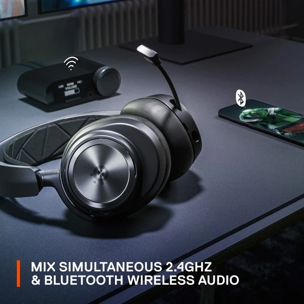 Mit dem SteelSeries Arctis Nova Pro Wireless ist man sofort startklar für die nächste Partie: Das Gaming-Headset bietet eine hohe Kompatibilität mit PC, Nintendo Switch, Playstation und mehr, dabei kann es drahtlos (Bluetoth) und per 3,5 mm Klinke oder über USB-C verbunden werden. Da die Hörmuscheln verstellt werden können, ist ein optimaler Sitz und eine gute Isolierung sicher gestellt, zusätzlich sorgt ANC (Active Noise Cancelling) mit dafür vorgesehenen Mikrofonen für einen Sound ohne Außengeräusche. Das dedizierte GameDAC erlaubt eine passgenaue Einstellung des Tons an den jeweiligen Inhalt und besitzt darüber hinaus ein brillantes OLED-Display zur besseren Erkennung. Neben einem satten Sound bietet das justierbare Mikrofon eine klare Sprachverständlichkeit, mit der man Taktiken optimal besprechen kann.Art.-Nr.: 1840322